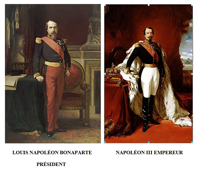 En 1792, la première République n’a pas de président à sa tête. En 1848, la monarchie de Juillet laisse la place a un gouvernement provisoire qui décrète le suffrage universel masculin et organise l’élection d’une Assemblée Constituante. La Constitution de la Seconde République du 4 novembre 1848 attribue un mandat de quatre ans non renouvelable immédiatement au président de la République. Le 10 décembre 1848, Louis Napoléon Bonaparte est élu président de la République au suffrage universel masculin. Par le coup d’État du 2 décembre 1851, c’est le rétablissement de l’Empire l’année suivante.