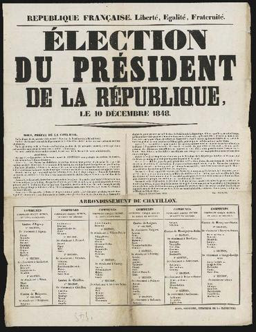 En 1792, la première République n’a pas de président à sa tête. En 1848, la monarchie de Juillet laisse la place a un gouvernement provisoire qui décrète le suffrage universel masculin et organise l’élection d’une Assemblée Constituante. La Constitution de la Seconde République du 4 novembre 1848 attribue un mandat de quatre ans non renouvelable immédiatement au président de la République. Le 10 décembre 1848, Louis Napoléon Bonaparte est élu président de la République au suffrage universel masculin. Par le coup d’État du 2 décembre 1851, c’est le rétablissement de l’Empire l’année suivante.